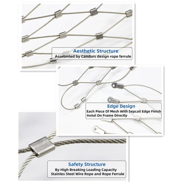 Recommended Monkey Tin-Copper Plated Architectural AISI316 Safety Cable Mesh With 80mm Apr 2mm Dia