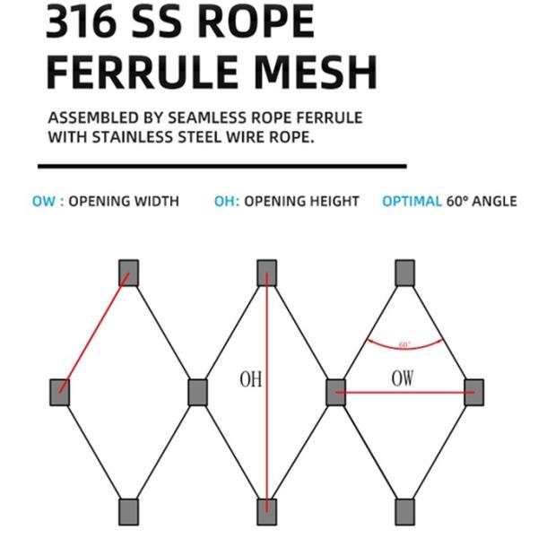 specification details of Tin-Copper Plated Architectural AISI316 Safety Cable Mesh With 80mm Apr 2mm Dia